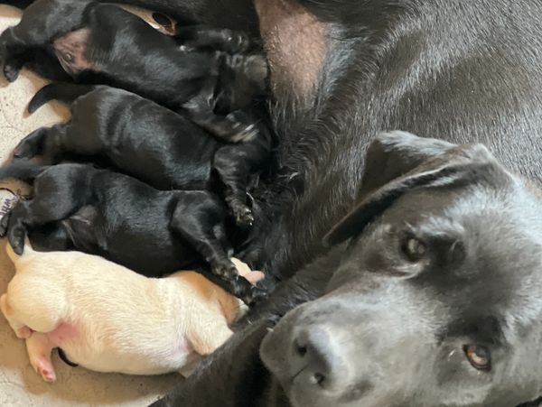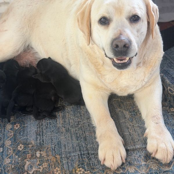 Our Lab puppies are considered English Labs which just means they are not "American" or "field bred" but closer to what you would see in the show ring.